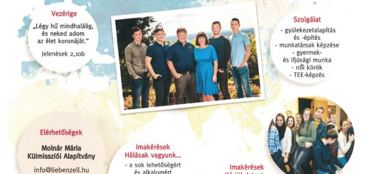A Molnár Mária Alapítvány szeretettel hív és vár minden érdeklődőt a Nemzetközi Liebenzelli Misszió beszámolójára, melynek címe (témája): Krisztusért járva követségben (beszámoló az oroszországi misszióról). Az előadók: Waldemar és Katharina Jesse misszionárius házaspár. A beszámoló 2019....