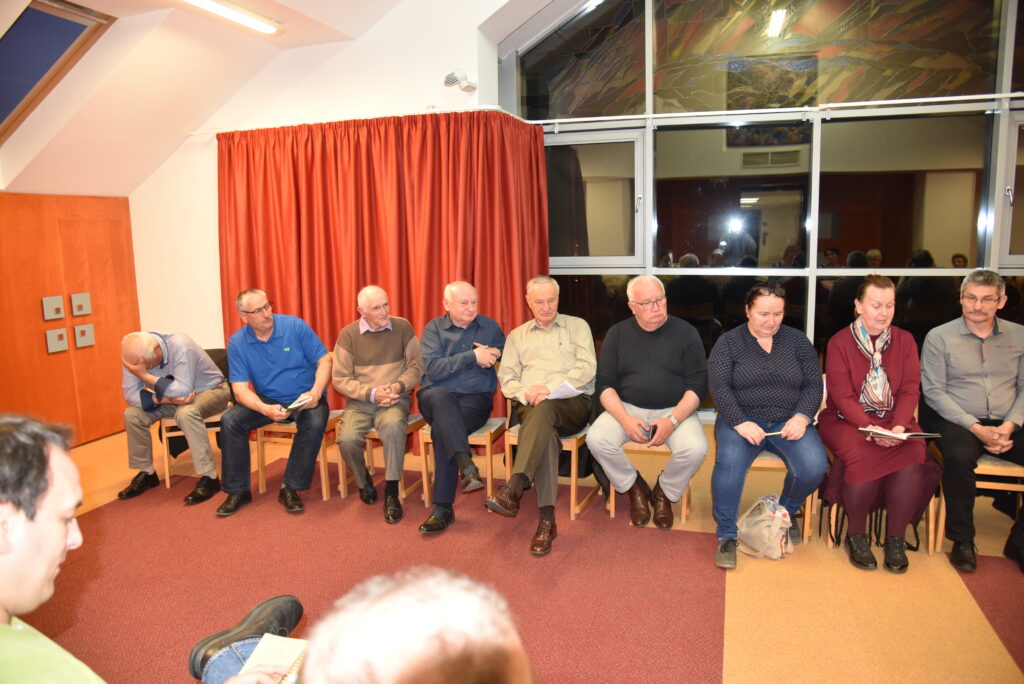 A közös vacsora elfogyasztása után, Hadházi Tamás esperes úr áhítatát hallgathattuk meg. Az emmausi tanítványok történetét hallgatva magunkra ismertünk, hogy mi is mennyire várjuk azt a jelet, amely visszafordít bennünket az emmausi útról, hogy reménnyel a szívünkben, bátran és lelkesen keressük Isten közelségét.