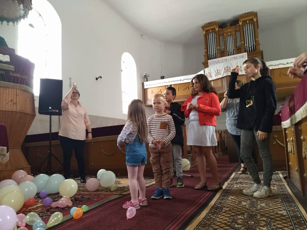 Egyházközségünk idén első alkalommal szervezett a gyermekek számára missziói gyermeknapot 2022. 05. 29-én. Mivel ekkor volt a hivatalos gyermeknap, adott volt a lehetőség a megfelelő időpont kiválasztására. Vasárnap délelőtt 10 órakor a templomi Istentisztelet gyermek-istentiszteletté változott, ahol az idősebbek is kicsit újra gyermekké válhattak. A lufikkal feldíszített templomban vártuk a résztvevőket, ahol Jézus tanításáról szólt az Ige, amikor azt mondja: „engedjétek hozzám jönni a gyermekeket.” Az Istentiszteleten gyermek dicsőítőénekek hangzottak, Zeiszky-Nagy Zsuzsanna jóvoltából. A gyermekek énekeltek és el is mutogatták az énekeket. Az istentisztelet után játszóbusz várta a gyermekeket, a Máltai Szeretetszolgálat és a Magyar Református Szeretetszolgálat jóvoltából. A játék és a gyermeknap 13.00 órakor véget ért, de hisszük lesz még folytatás.