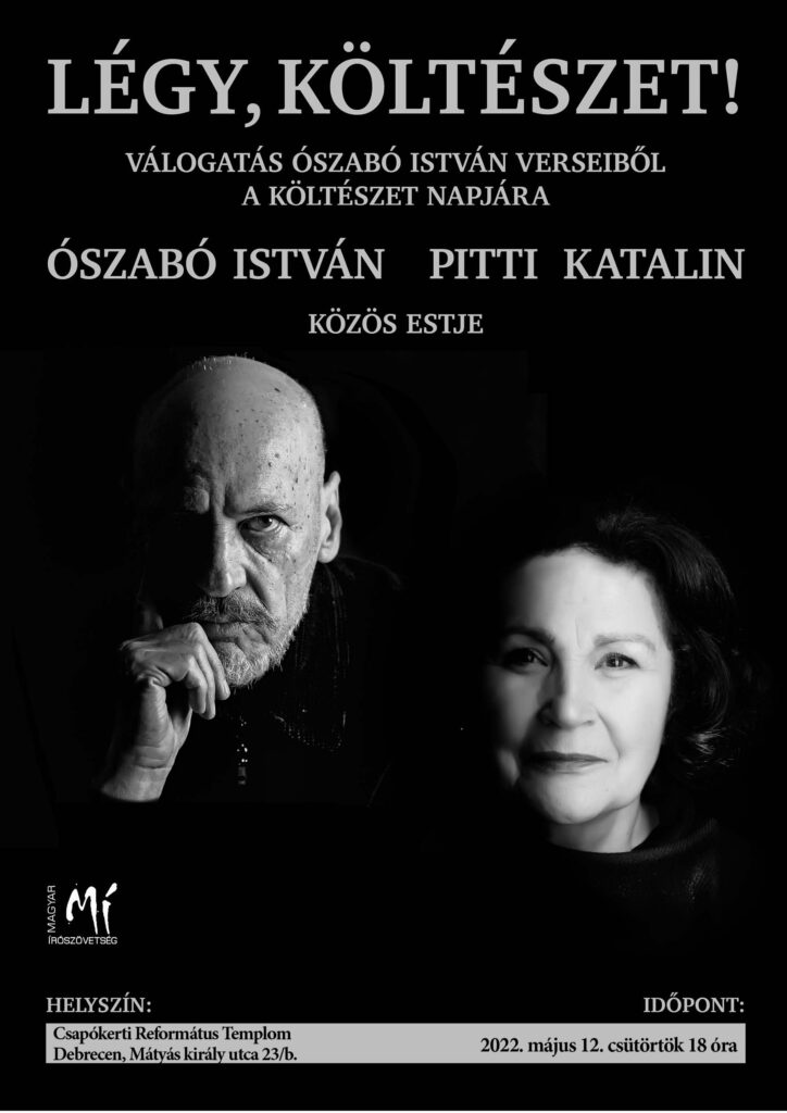 A Debrecen-Csapókert Hitbéli Megújulásáért Alapítvány szervezésében 2022. május 12-én csütörtökön 18 órától szeretnénk templomunkban megszervezni Pitti Katalin Liszt Ferenc díjas operaénekesnő és Ószabó István költő, író, festő közös estjét, melyen a költő verseiből hallhatunk válogatást.