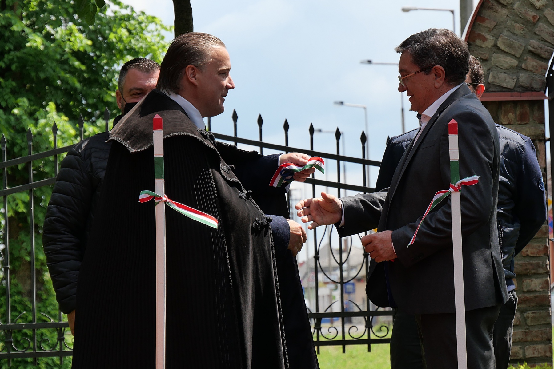 Az átadó ünnepségen először Nagy Gábor lelkipásztor köszöntötte az egybegyűlteket, aki ünnepi beszédében hangsúlyozta: „Az, hogy a templomtéren újra élet lehet, Isten megtartó szeretetének és az újrakezdés reményének látható jele. A karantén bezártsága után a tágas templomtéren a Zakariás látomásában elhangzó biztató és reményteljes jövő ígérete csendül fel: „Ezt mondja a Seregek Ura: Fognak még öregemberek és öregasszonyok üldögélni Jeruzsálem terein, és mindegyiknek bot lesz a kezében, mert magas kort érnek meg. A város terei megtelnek fiúkkal és leányokkal, akik vígan játszadoznak a tereken. Ezt mondja a Seregek Ura: Bár lehetetlennek tartja a megmaradt nép, hogy ez így legyen abban az időben, az én számomra ez mégsem lehetetlen – így szól a Seregek Ura” (Zak 8,4-6).