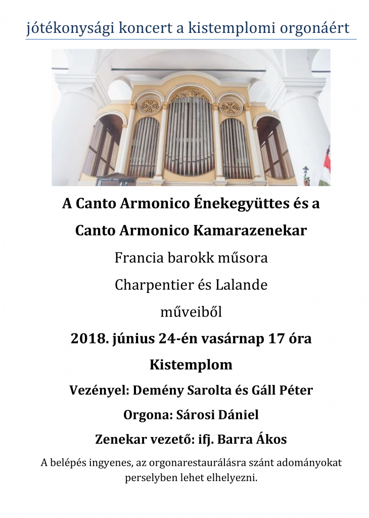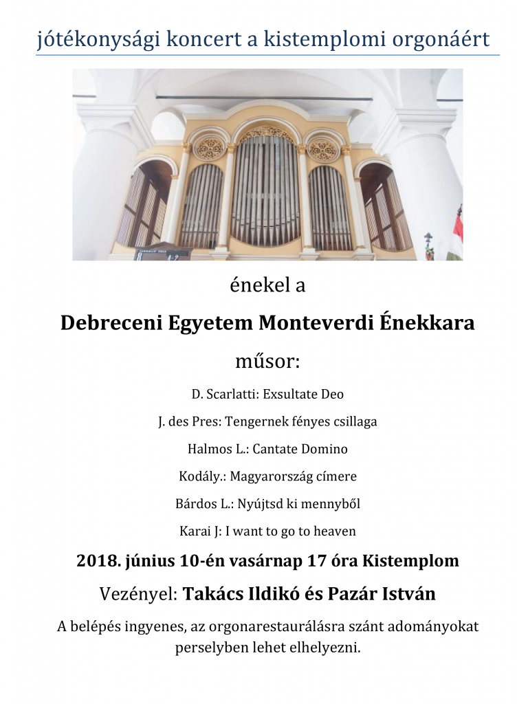 Június 10-én és június 24-én jótékonysági koncert lesz a Kistemplomban.
