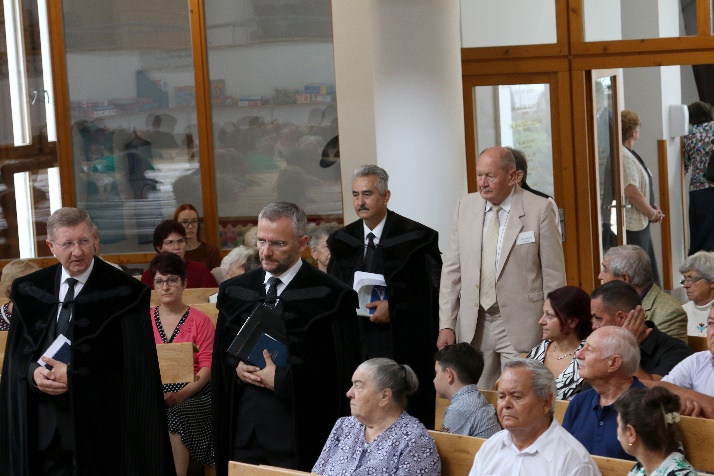 Az igehirdetést követően, Püspök úr a köszöntötte az ünneplő gyülekezetet, és kiemelte, hogy a templom építése – mint egyszeri alkalom – nem volt egyszerű feladat, de azt megtölteni, élővé tenni, az sokkal nehezebb feladat. Ez csak hűséges szolgálatok révén, a Szentháromság Isten segítségével lehetséges.